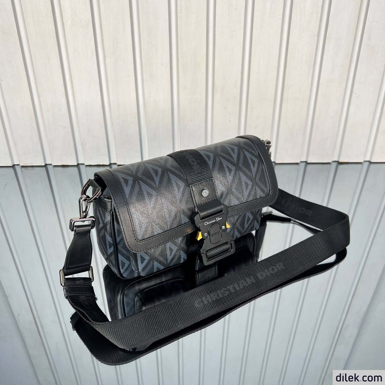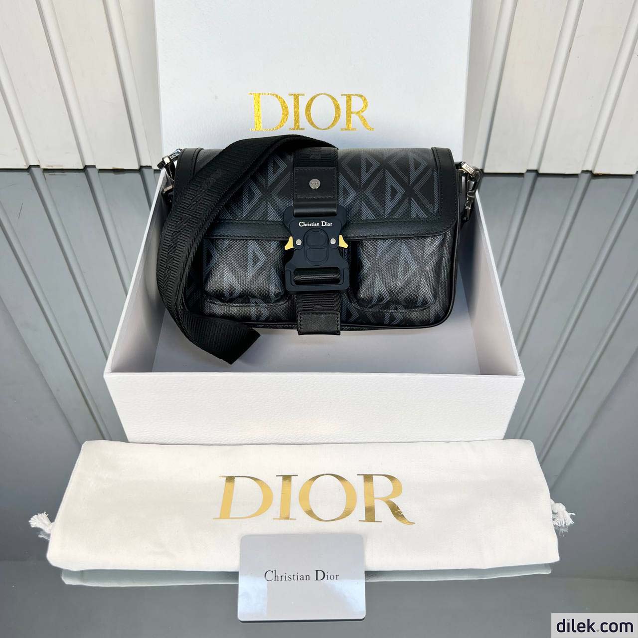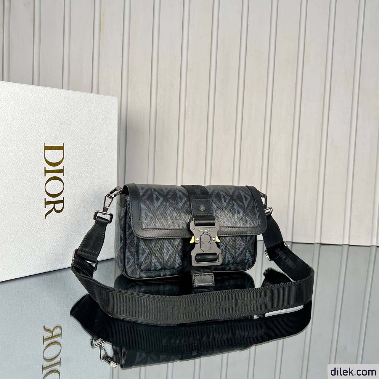 The Dior Hit The Road bag with strap combines modernity with Dior’s couture spirit. Crafted in black grained calfskin, it presents a flap with a Christian Dior aluminum buckle, as well as a spacious main compartment and two front pockets to easily access the essentials. Featuring an adjustable and removable shoulder strap, the functional bag will lend the finishing touch to casual outfits.