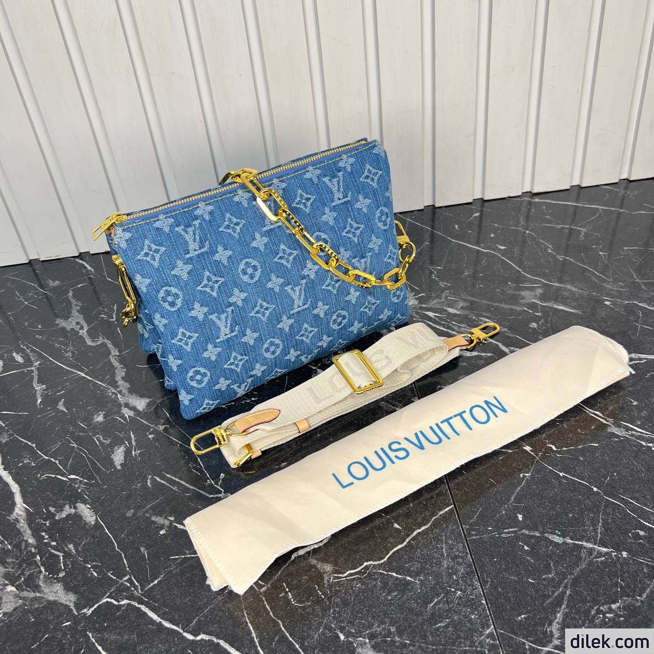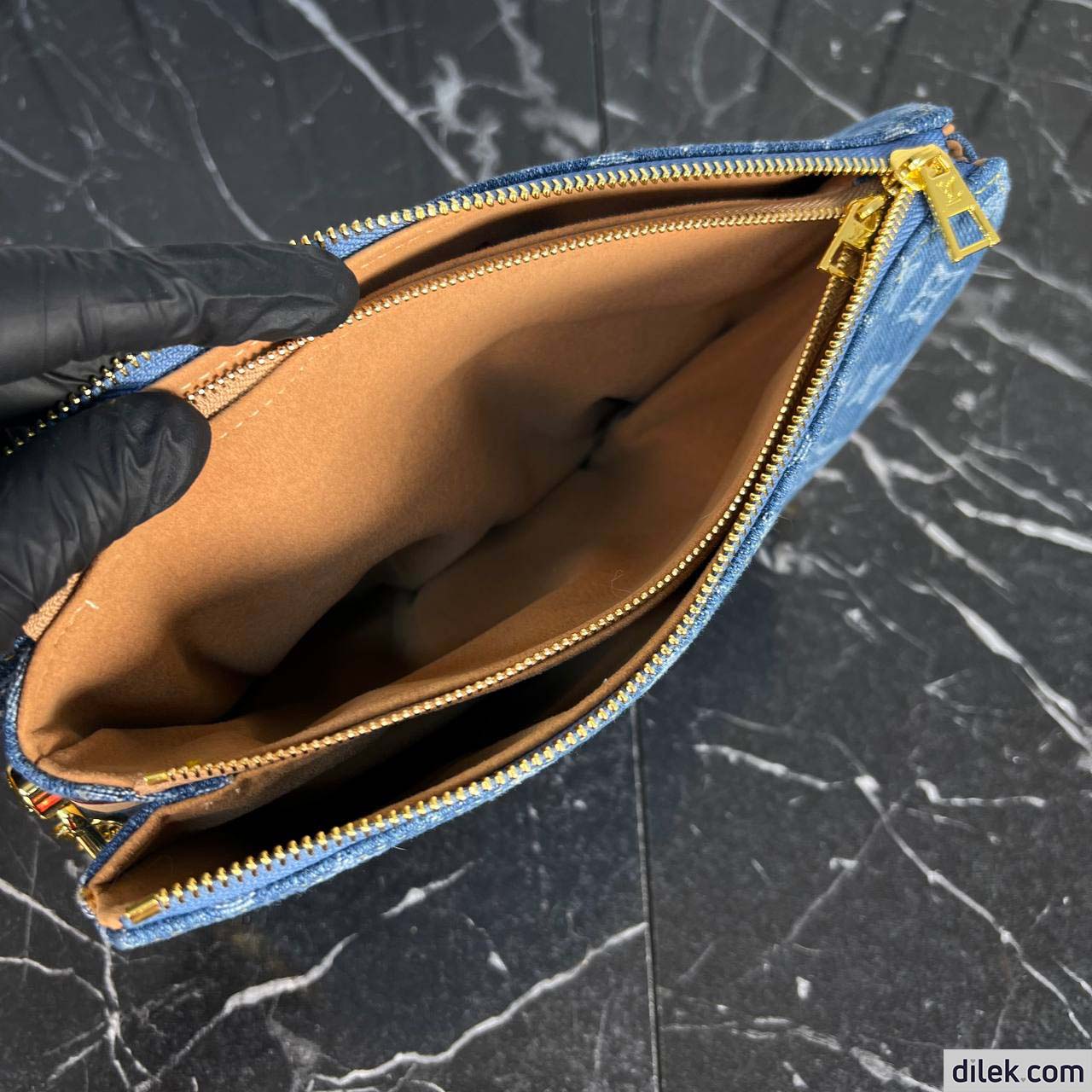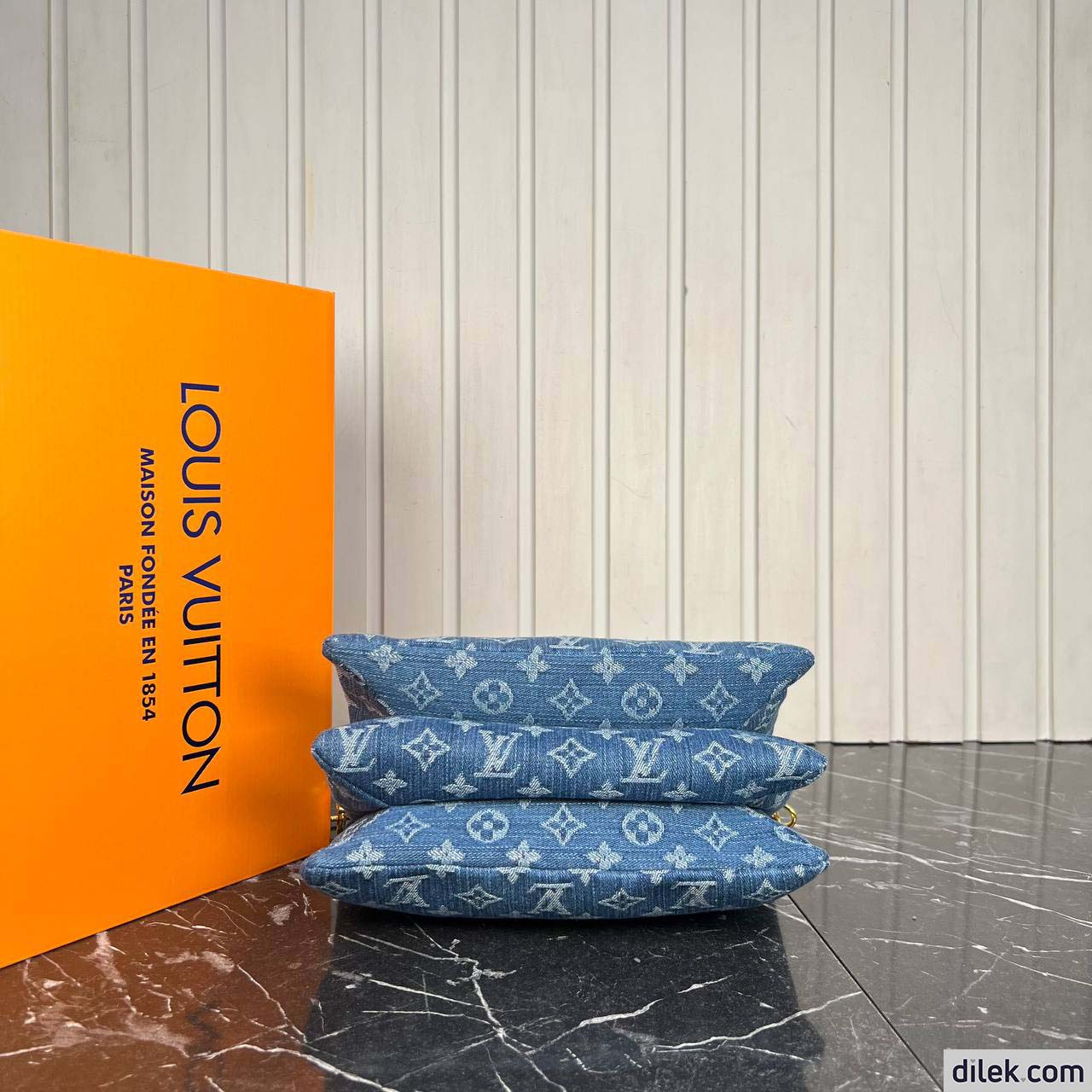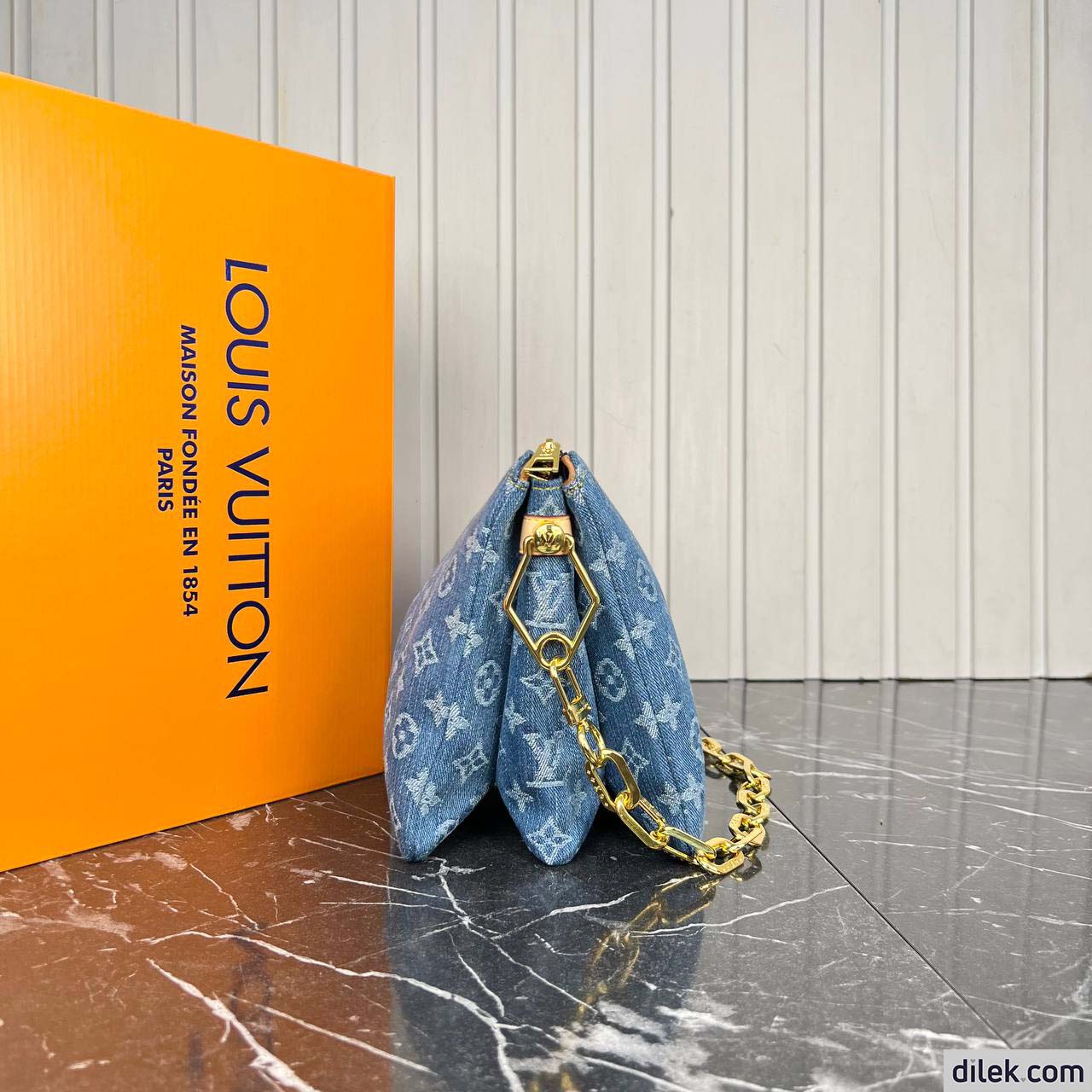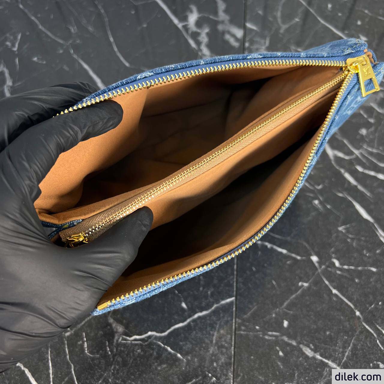 The Coussin PM handbag takes a fresh direction, with this desirable new material made from organic cotton denim. The fabric is bleached and stonewashed to give each piece a unique allure. Supple and lightweight, the bag can be styled with or without the chunky, engraved and wide textile strap both are easily detachable.