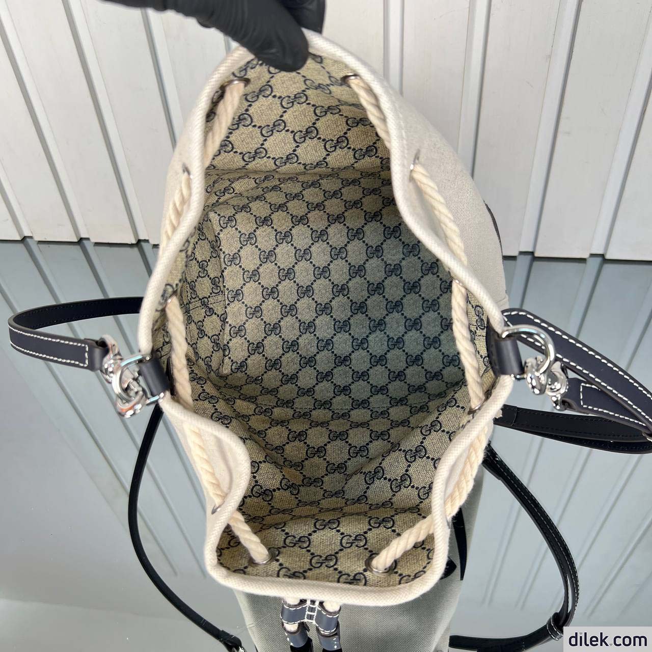 Inspired by the summer spirit and beach clubs on the Italian coast, this item is part of Gucci Lido. Well-known prints of the House constantly evolve to tell a unique narrative. An essential storytelling element of the Cruise 2024 collection, the 'Gucci Made in Italy' print defines this beige canvas shoulder bag with a light brown trim and GG Supreme lining.