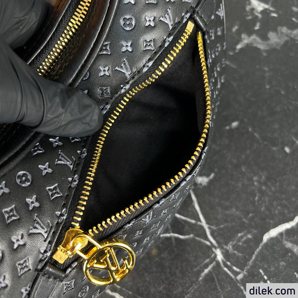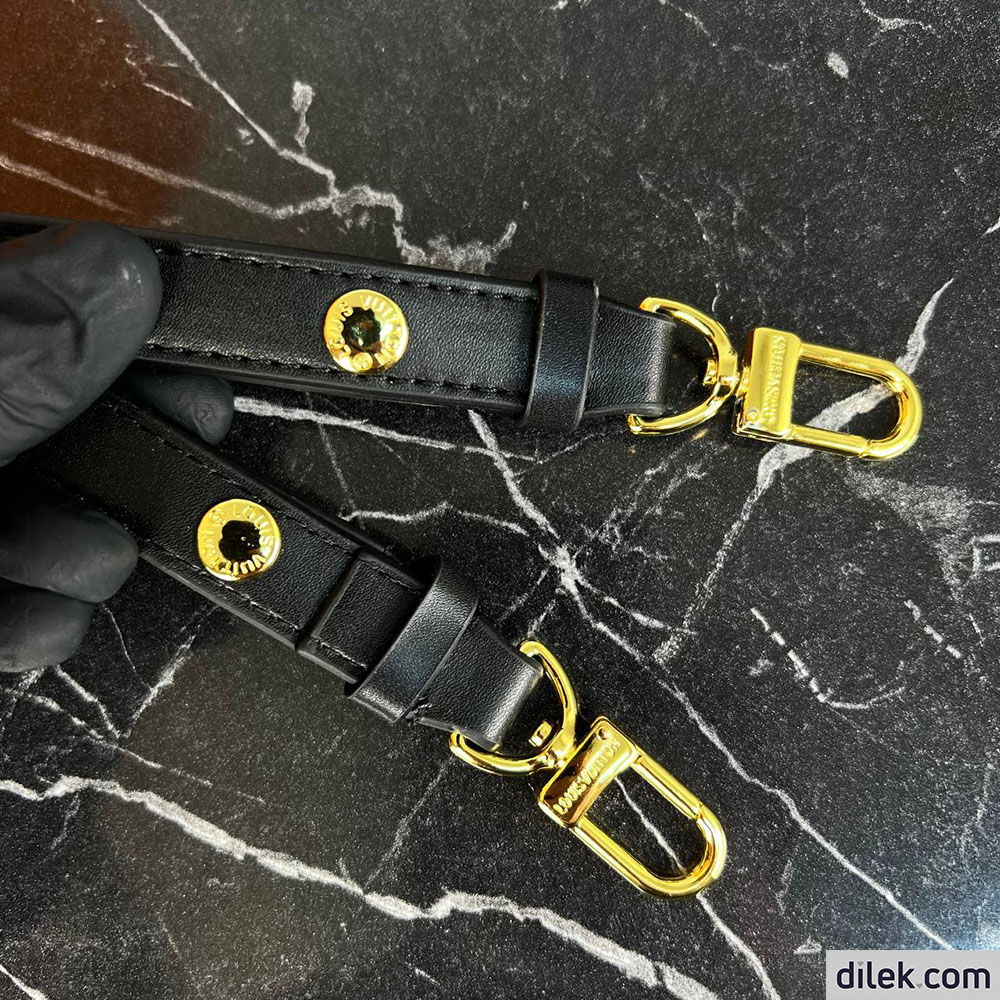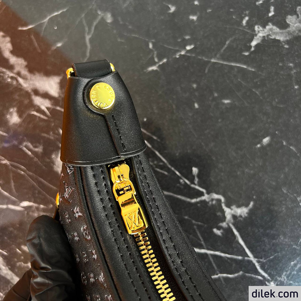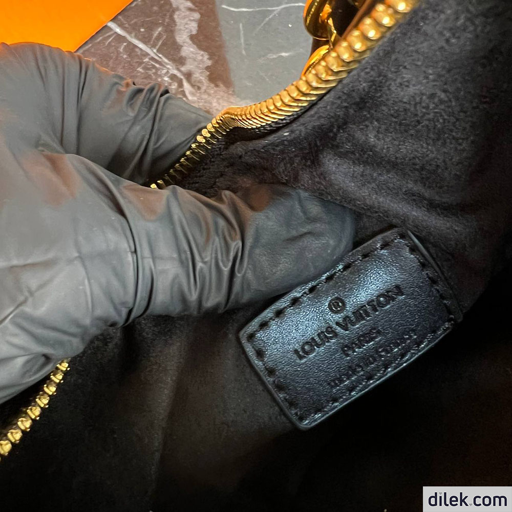 The Loop baguette handbag is fashioned from calfskin with a nano version of the Monogram embossed into the leather. The colored silk-screened LVs and Monogram Flowers contrast subtly with the base. The bag is accented with gold finish on the chain and the emblematic LV Circle zip pull.