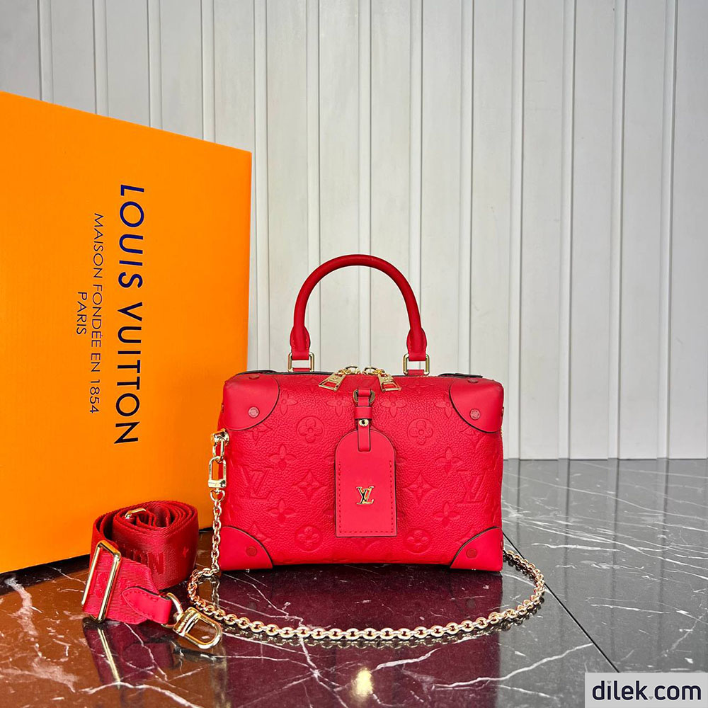 The distinctive Petite Malle Souple is a soft handbag steeped in the House history. The Monogram canvas, riveted leather corners, and leather name tag all evoke Louis Vuitton’s legacy as a trunk maker. A gold-color nautical chain and wide removable strap, with Louis Vuitton Malletier embroidered on it, bring up-to-the-minute style.