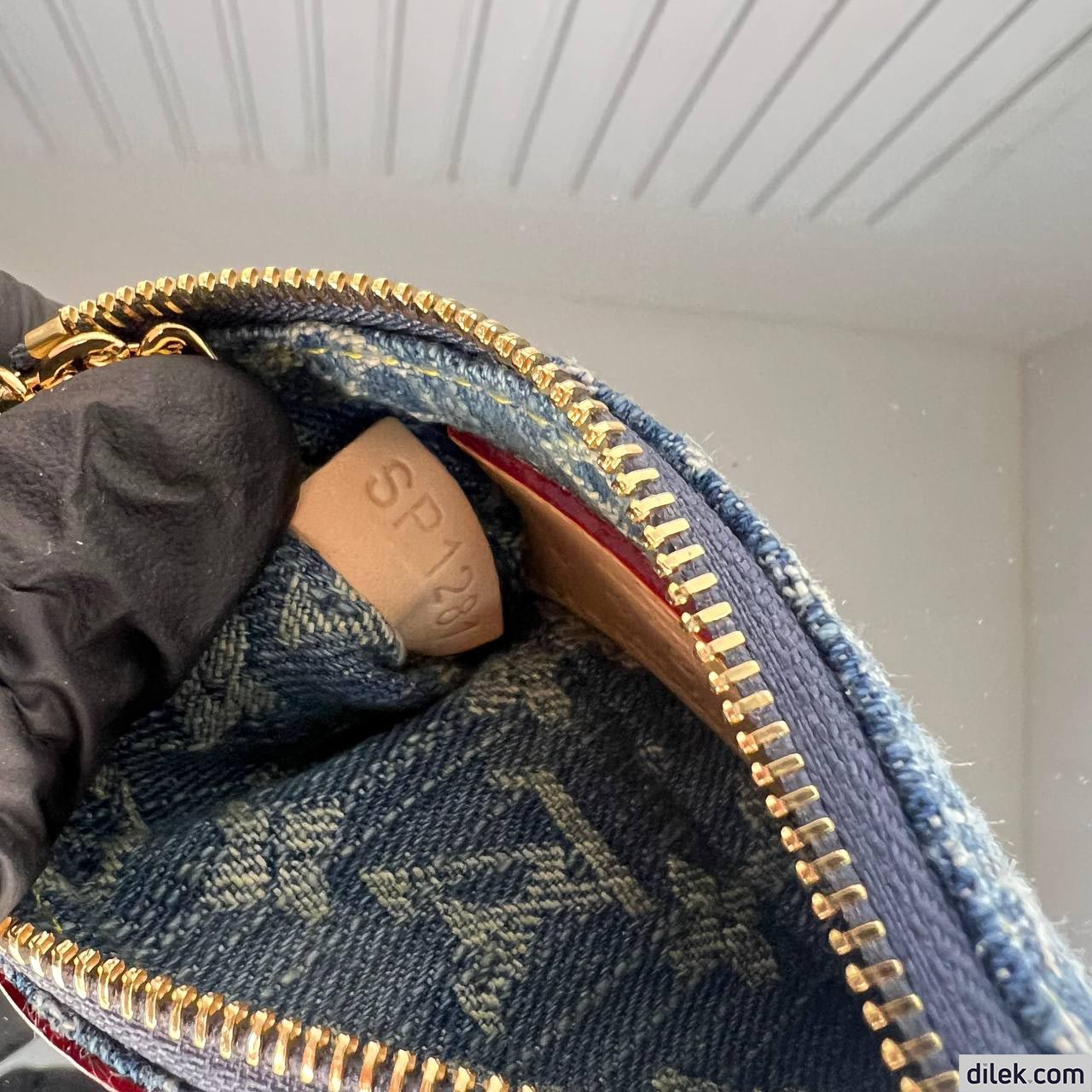 The Key Pouch is made from stone-washed Monogram Denim, with natural cowhide-leather trim and gold-color hardware. In addition to holding keys, it can also be used to securely carry cash and cards thanks to its zip closure. A small hook-and-chain allows it to be attached to a bag or belt.