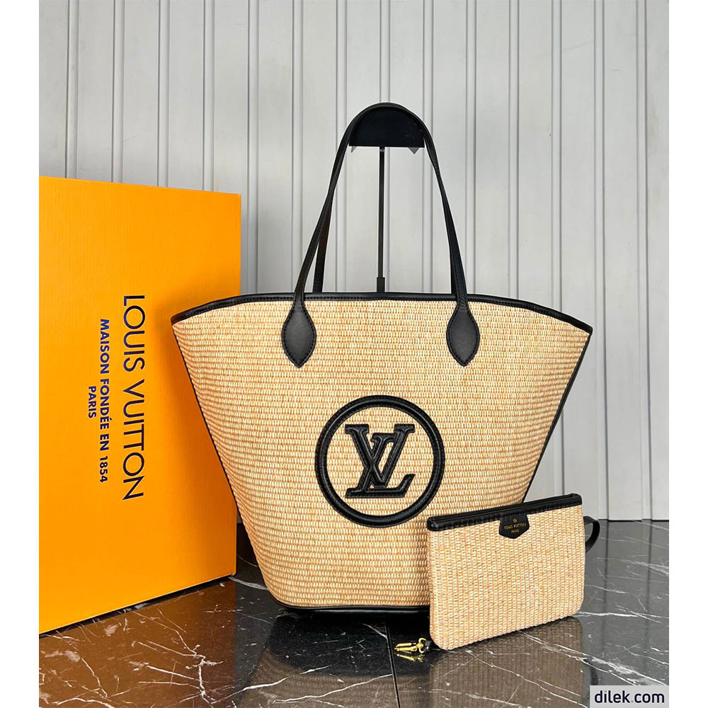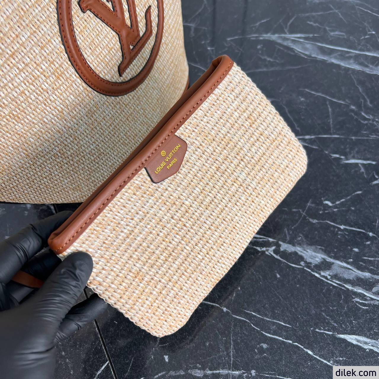 With the Saint Jacques, Louis Vuitton reinterprets that summery staple, the raffia beach bag. Smooth leather trim and detailing add elegance to this capacious model, the ideal casual-chic companion for sunny days, on city streets or by the sea. A removable raffia pouch can serve as either an extra pocket or a compact clutch.