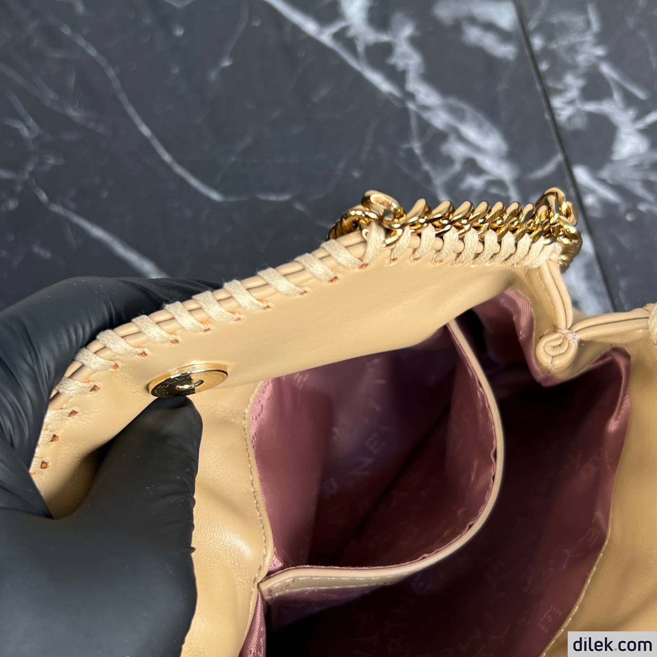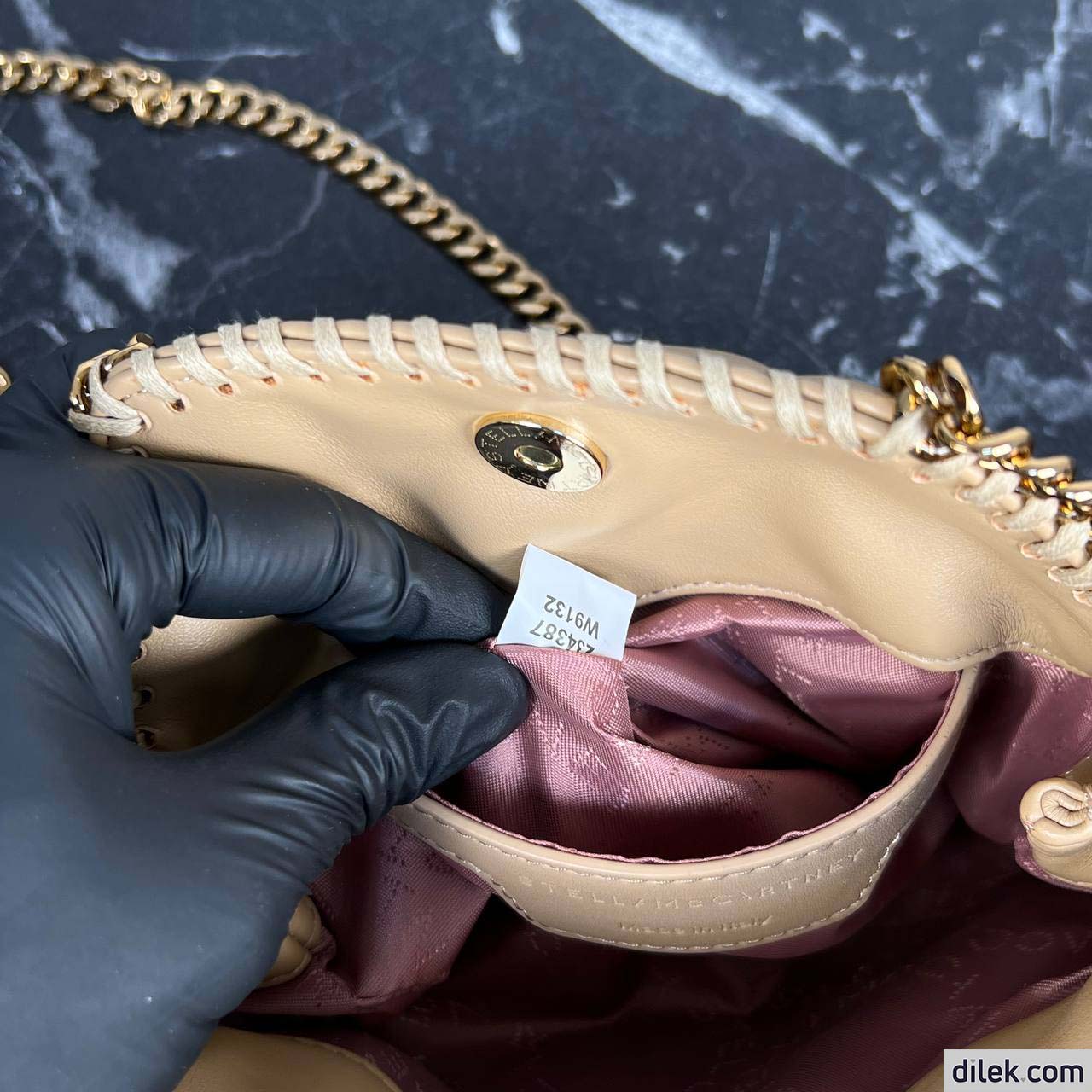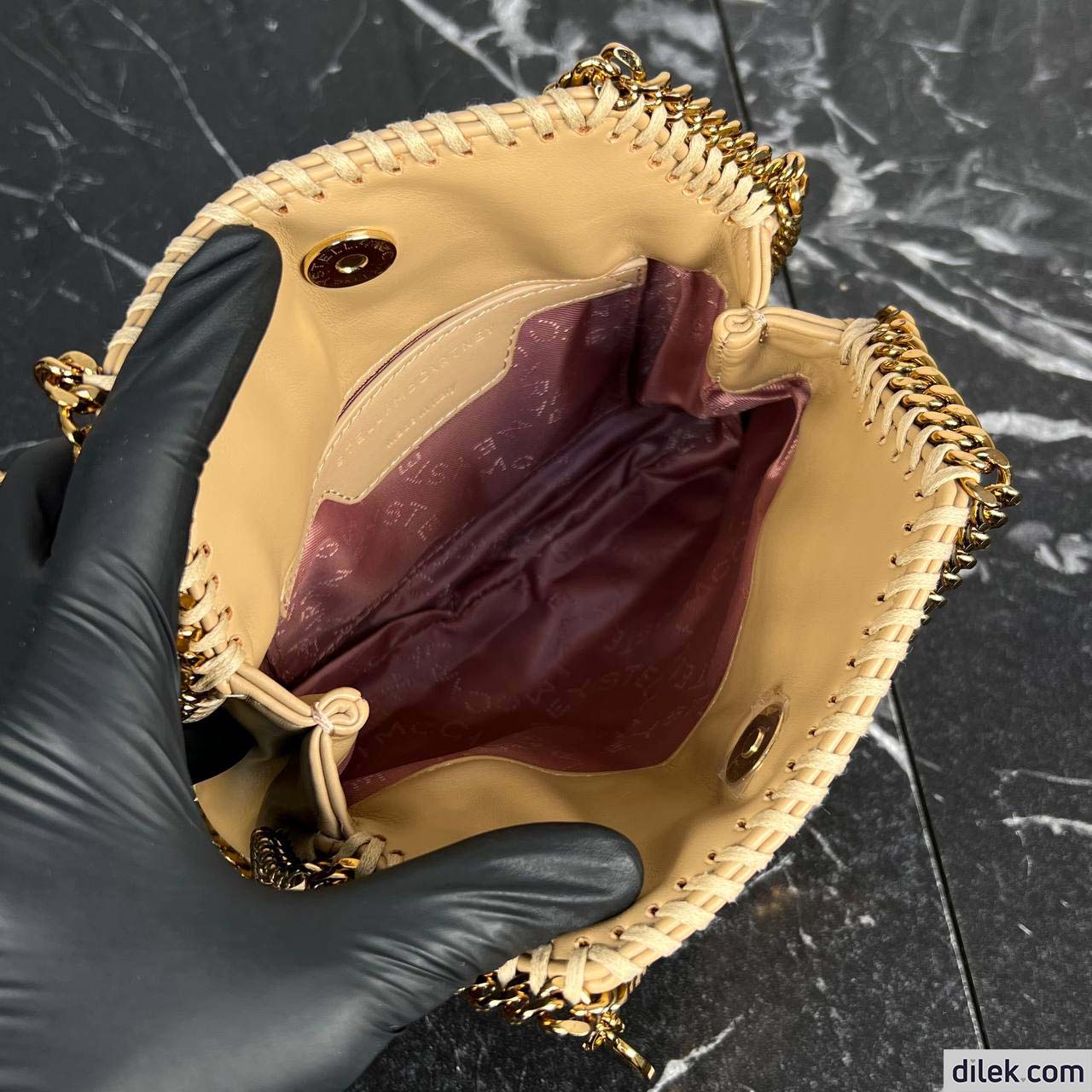 Elevate everyday dressing with this iconic Stella McCartney Falabella tiny tote bag. Responsibly made from our signature grained Shaggy Deer fabric, this vegan tote bag is framed by a gold recycled brass and aluminium diamond-cut chain and is lined with recycled materials.