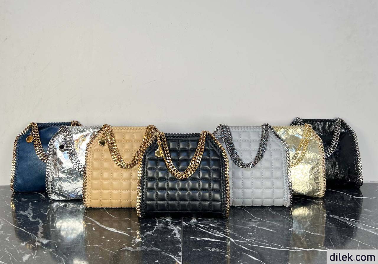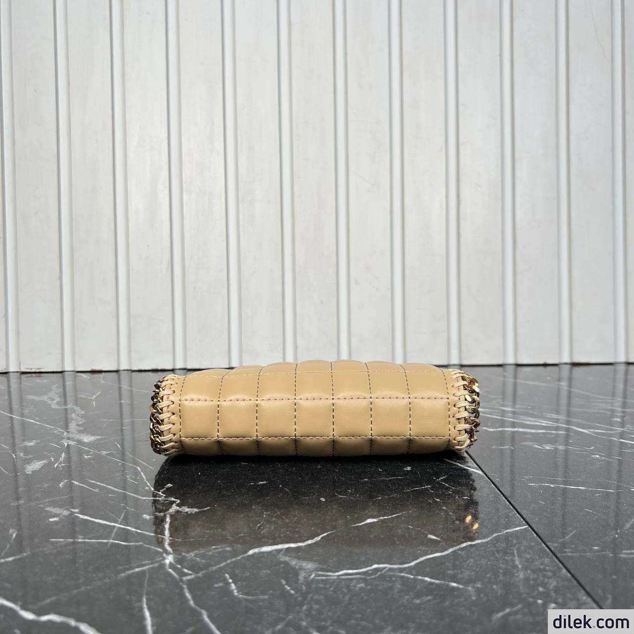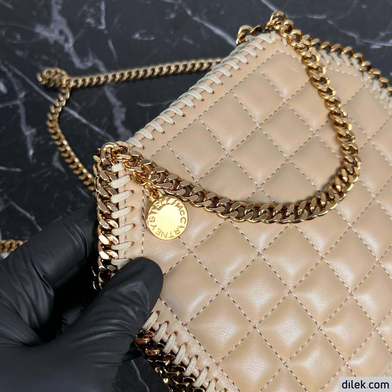 Elevate everyday dressing with this iconic Stella McCartney Falabella tiny tote bag. Responsibly made from our signature grained Shaggy Deer fabric, this vegan tote bag is framed by a gold recycled brass and aluminium diamond-cut chain and is lined with recycled materials.