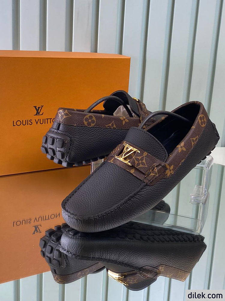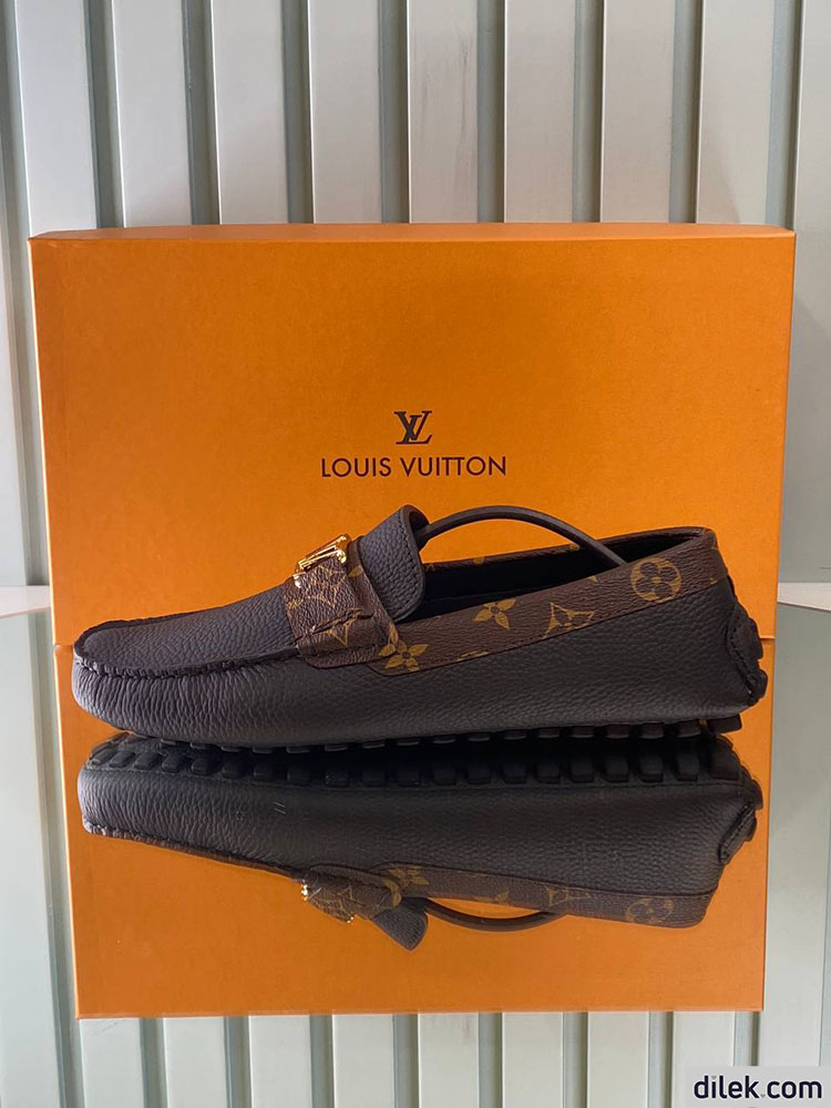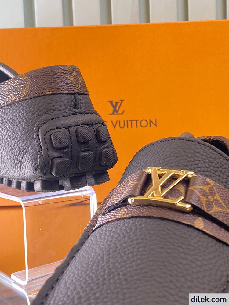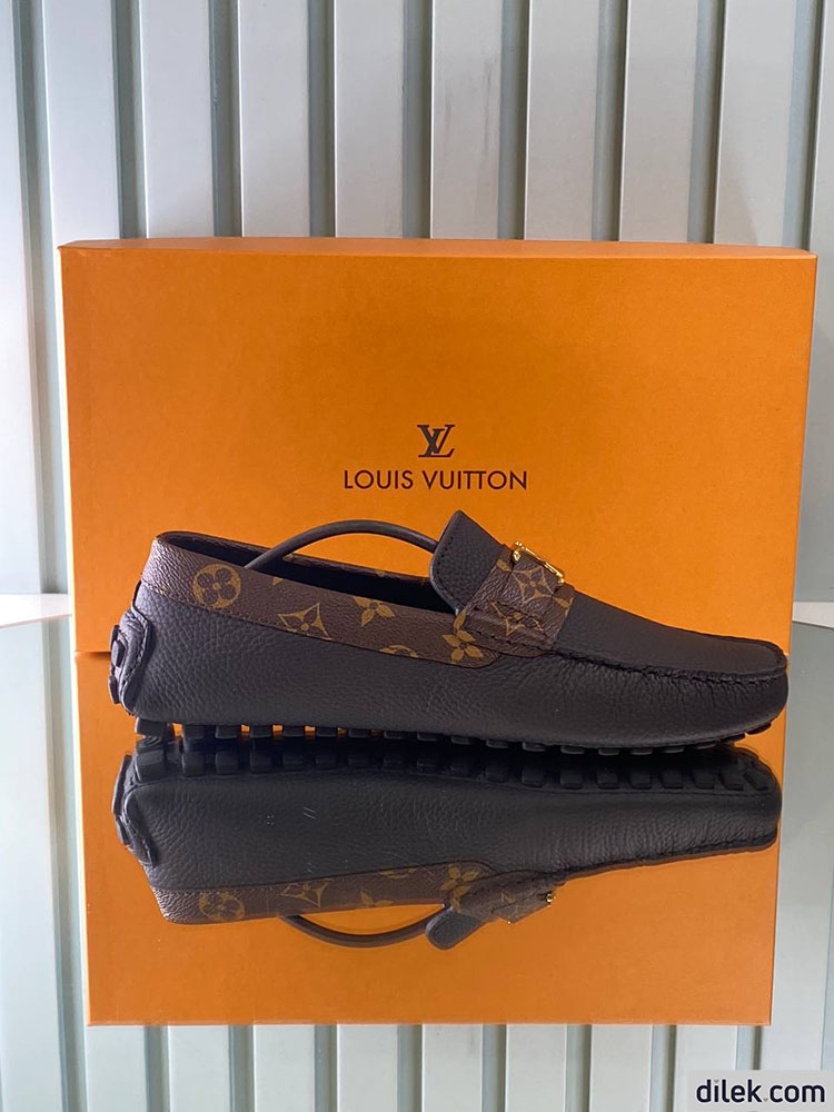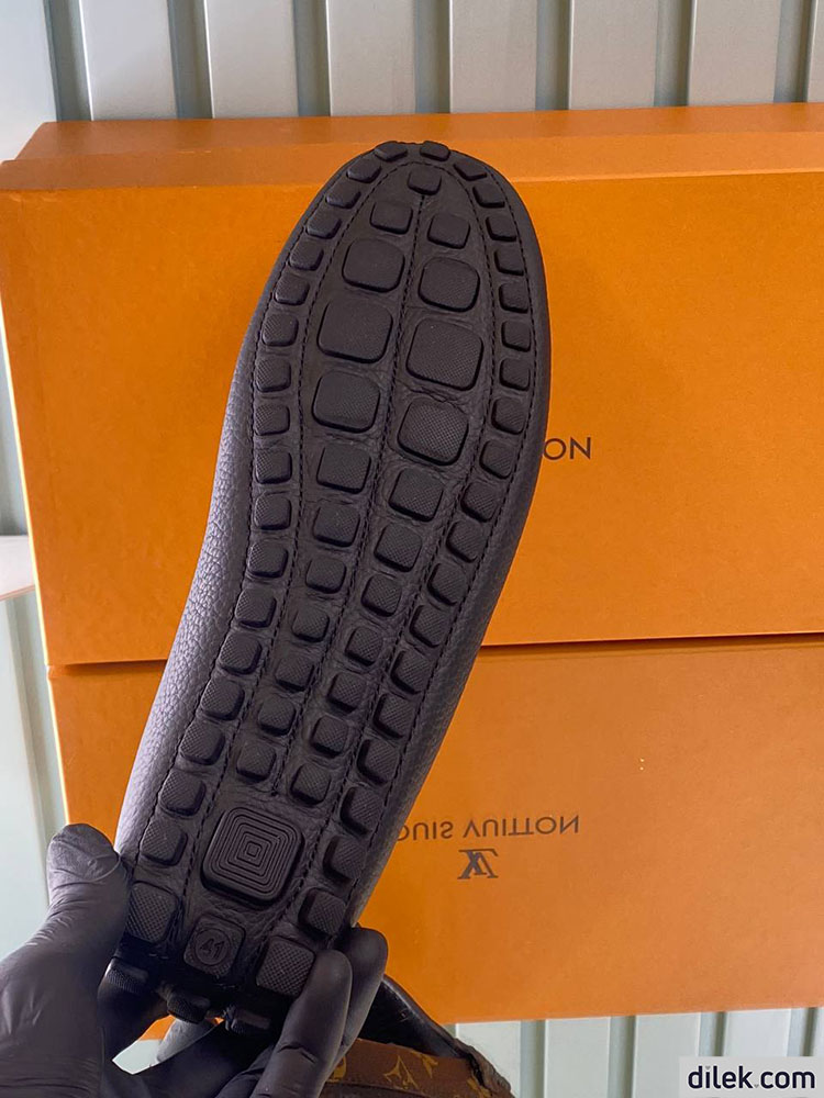 The iconic Monte Carlo moccasin is reinterpreted in calf leather with a hand-stitched vamp embossed with an oversized version of Louis Vuitton's historic Damier pattern. Designed for lightness and flexibility, this car shoe has a tubular construction and an outsole with rubber pads at the front and back. It is finished with an LV Initials accessory.