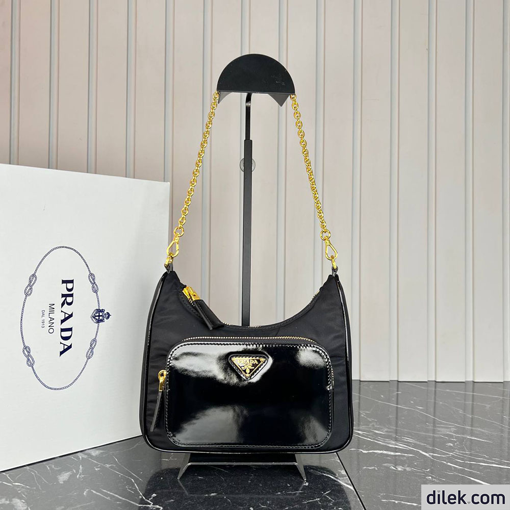 A new interpretation of an iconic Prada style, the Re-Edition 2000 mini-bag is made of innovative Re-Nylon, produced from recycled, purified plastic trash collected in the ocean, fishing nets, and textile waste fibers. The accessory with zipper closure and woven tape handle is decorated with the iconic enameled metal triangle logo.